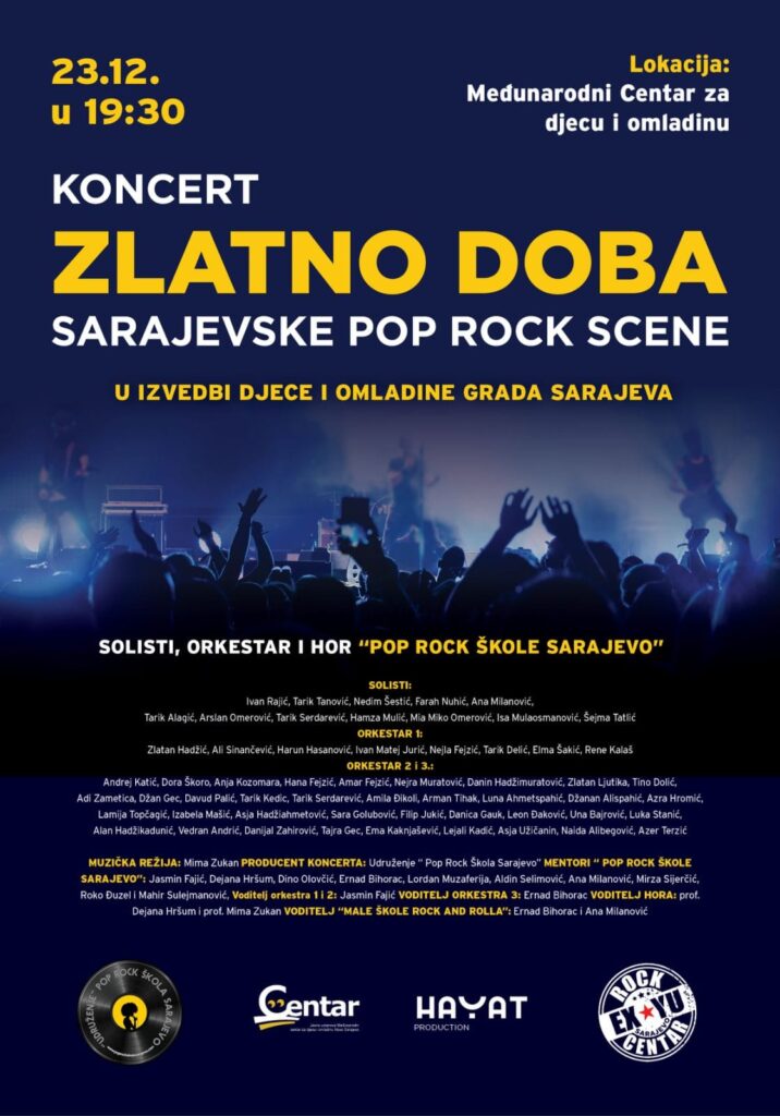 Novogodišnji Koncert ” Zlatno doba sarajevske pop rock scene -Koncert ” Pop Rock Škole Sarajevo” je održan sinoć, 23.12.2023. u