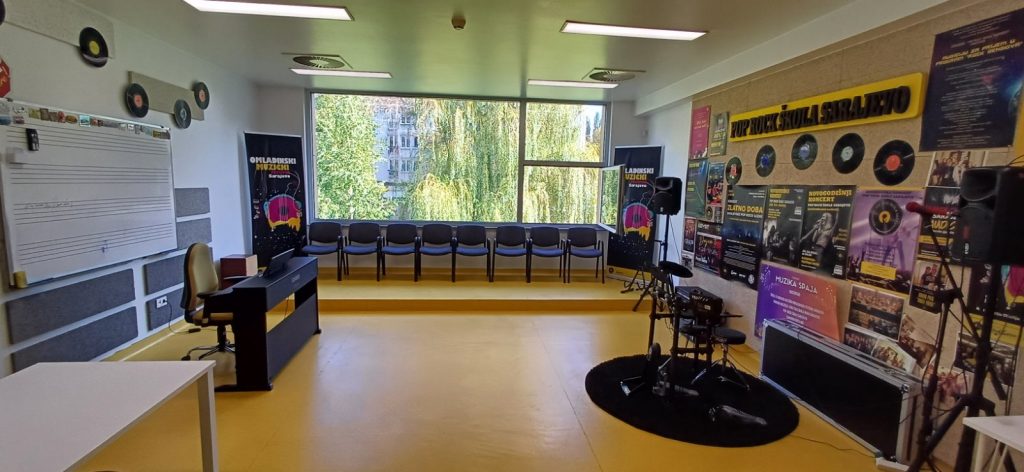 Pop Rock Škola Sarajevo nastala je 2016. godine iz ideje muzičkih pedagoga i umjetnika da se mladima omogući savremeno, kreativno i praktično muzičko obrazovanje, oslonjeno na bogatu tradiciju sarajevske pop-rock scene. Danas škola okuplja više od 150 djece i mladih iz cijele Bosne i Hercegovine, ali i iz različitih zemalja svijeta, stvarajući otvorenu i inspirativnu zajednicu u kojoj muzika povezuje ljude. Nastava se odvija kroz individualne časove prilagođene svakom učeniku, a nakon savladavanja osnova polaznici ulaze u prepoznatljivi rock band program, gdje uče svirati zajedno, razvijati scenski nastup i sticati pravo iskustvo muzičke scene. U školi djeluju odsjeci za gitaru, bubnjeve, klavir, bas gitaru, saksofon i vokal, kao i programi bendovske prakse, studijskog rada i pripreme za nastupe. Redovni koncerti, gostovanja na festivalima i međunarodnim takmičenjima pružaju učenicima priliku da svoj talent pokažu pred publikom, dok mentorska podrška prati njihov umjetnički i lični razvoj.
